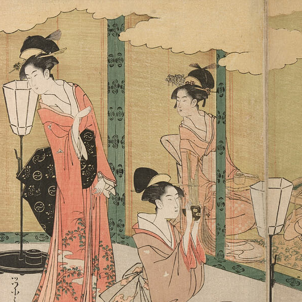 È proprio attraverso queste raffigurazioni che ho notato il dettaglio delle tende e paraventi in bambù e ho scoperto per la prima volta i Sudare.